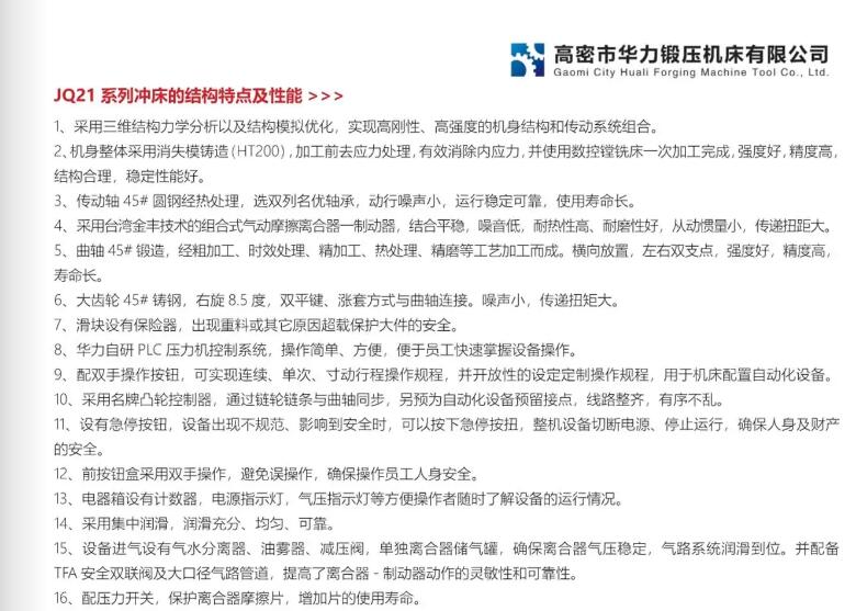 簡介:高密市華力鍛壓機(jī)床有限公司專業(yè)研發(fā)、設(shè)計(jì)、制造鍛壓機(jī)械產(chǎn)品,主導(dǎo)產(chǎn)品:高密鍛壓、高密沖床、國標(biāo)沖床、重型沖床等系列沖床機(jī)械。先進(jìn)的生產(chǎn)設(shè)備與成熟的工藝,先進(jìn)的技術(shù)與人性的科學(xué)管理方式,為用戶提供高質(zhì)量的產(chǎn)品。電話:0536-2887477